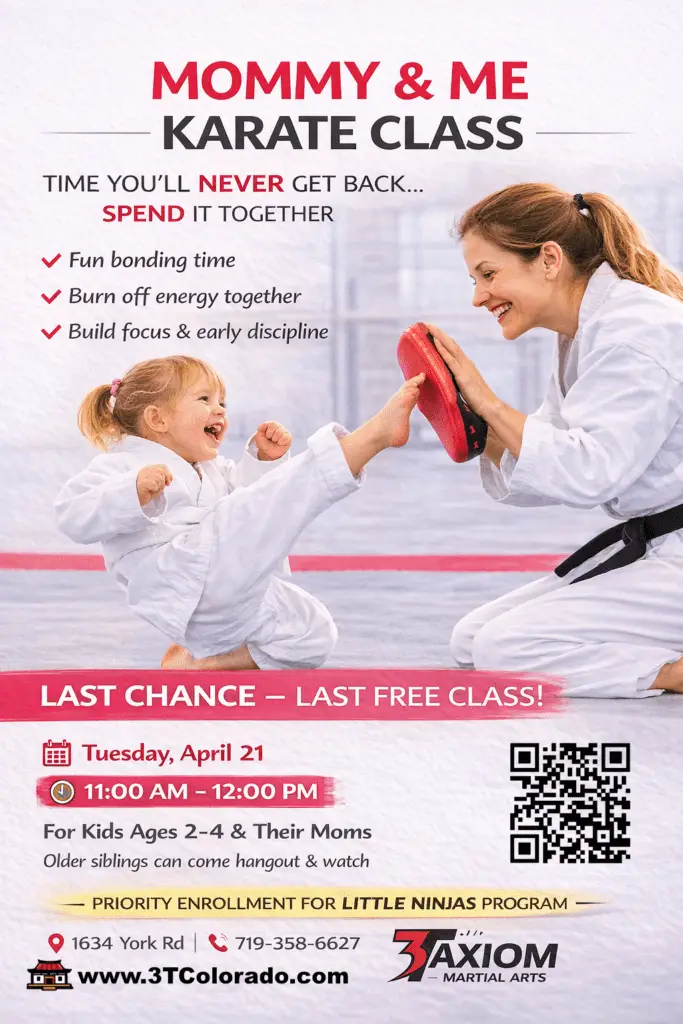 Join us for a fun and meaningful Mommy & Me Karate Class designed especially for young children ages 2–4 and their moms. This class is all about laughing together, building confidence, and creating positive memories through simple, playful karate movements.